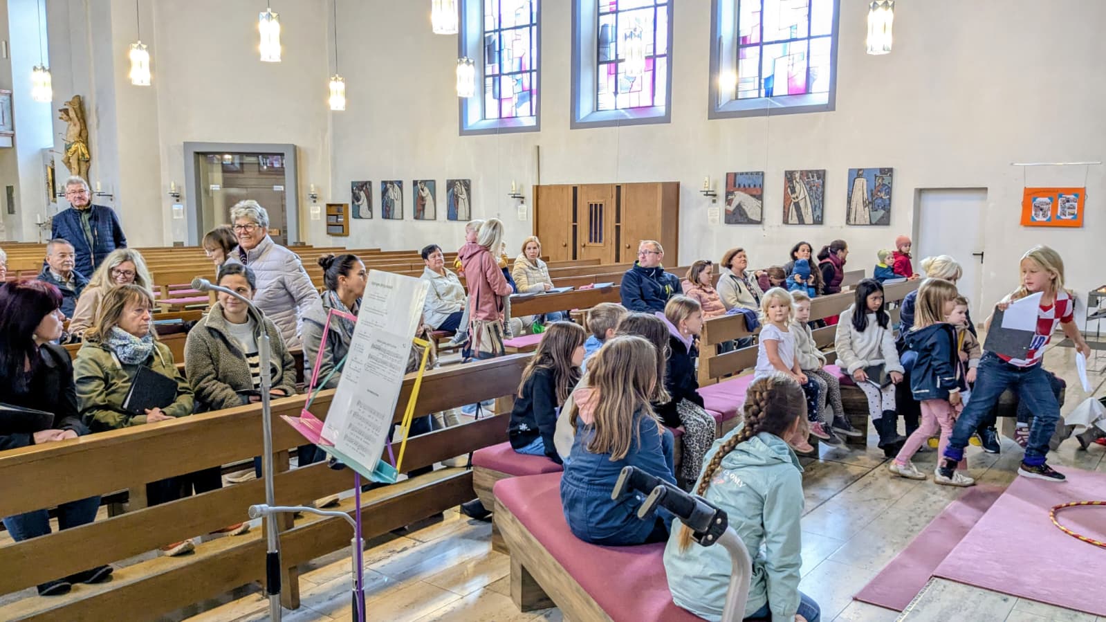 Zahlreiche Kinder erlebten einen fröhlichen, aber auch nachdenklichen Kindergottesdienst, den Melanie Wahl und Franziska Wießler vorbereitet hatten.